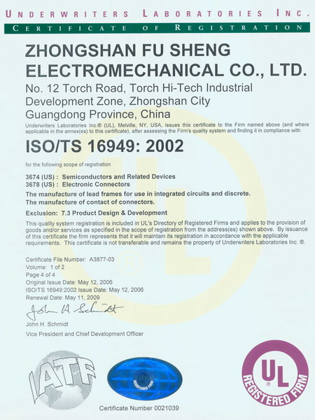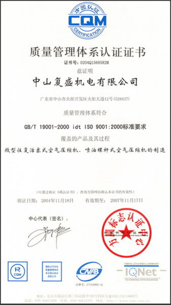 復(fù)盛機械產(chǎn)品ISO9001認證