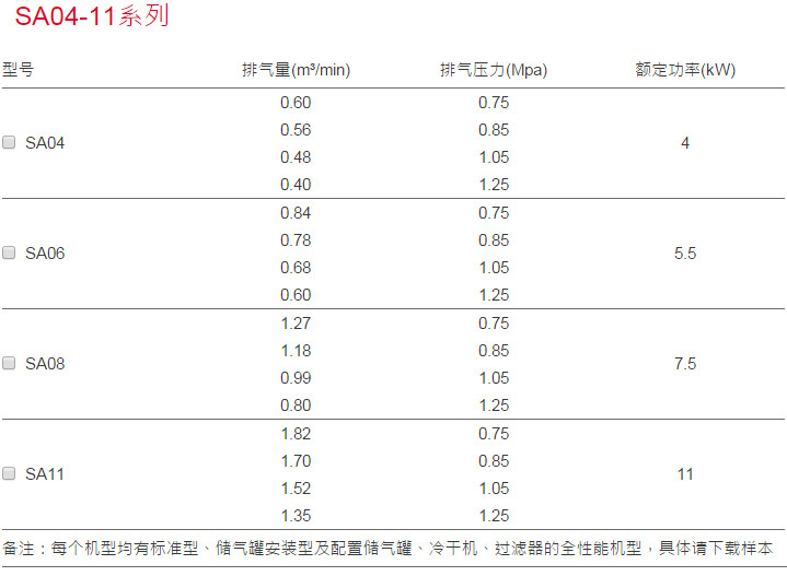 產(chǎn)品介紹 >SA系列螺桿空氣壓縮機>SA04-11(SAV08-11)系列